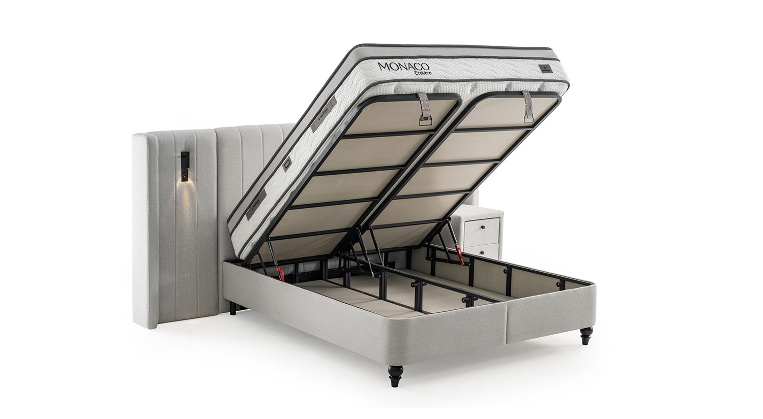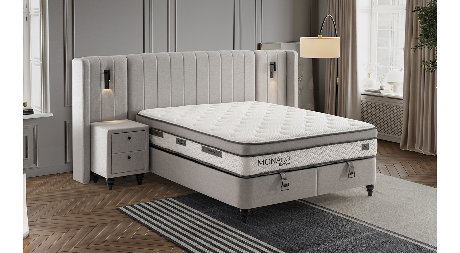 Baza de pat Monaco se remarcă printr-un design elegant și modern, cu un finisaj textil de înaltă calitate, într-o nuanță de gri rafinat. Structura sa solidă este completată de un tăblie capitonată, care adaugă un plus de confort și stil. Picioarele negre oferă stabilitate și un contrast subtil, accentuând estetica sofisticată a produsului. Această bază de pat este ideală pentru a completa un dormitor contemporan, oferind atât funcționalitate, cât și un aspect vizual plăcut.