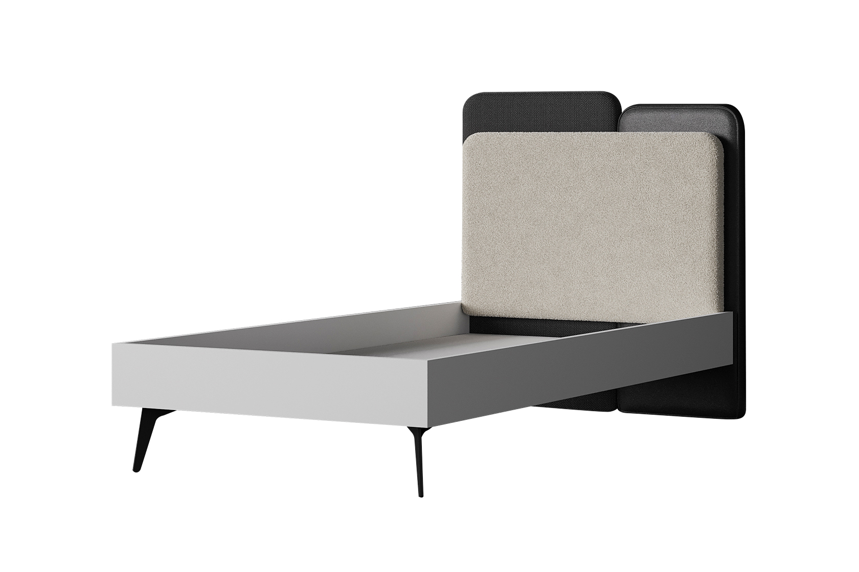 Baza de pat și tăblia Vena, cu dimensiunile de 120×200 cm, reprezintă o alegere inspirată pentru amenajarea dormitoarelor de tineret, prin designul modern și elegant. Liniile curate și finisajul rafinat, alături de structura albă, creează un ambient luminos și aerisit, potrivit spațiilor destinate celor tineri. Tăblia, formată din două panouri în nuanțe de negru și bej, aduce un contrast discret și sofisticat, iar picioarele negre, subțiri și ușor înclinate, oferă stabilitate și un aer contemporan. Este o soluție practică și estetică pentru un dormitor modern de tineret.