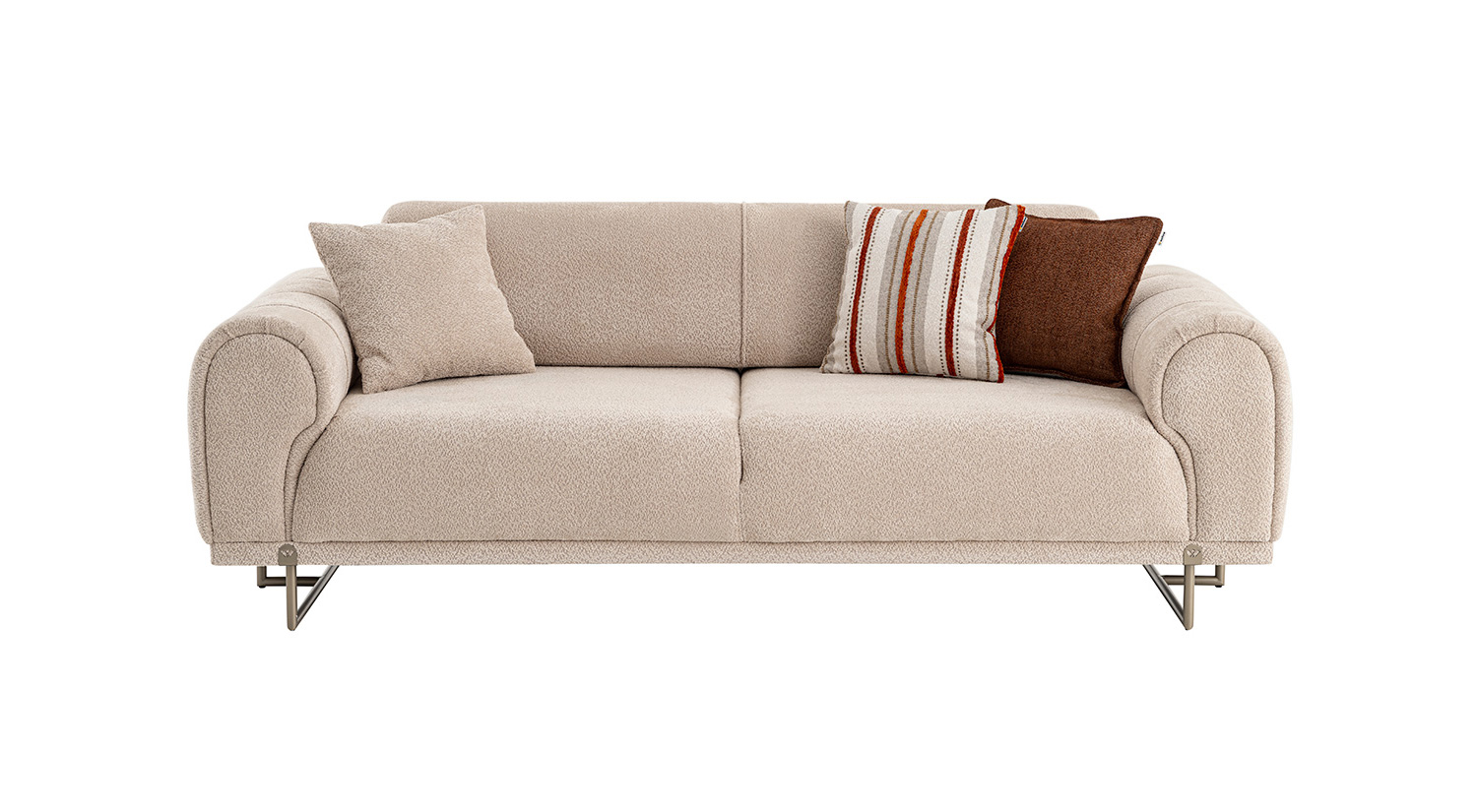 Canapeaua Alaska, Bej, 2 Locuri, se remarcă printr-un design elegant și modern, cu linii curate și un aspect compact. Structura sa este robustă, iar finisajul din material textil bej adaugă un aer sofisticat și confortabil. Brațele sunt rotunjite, oferind un plus de confort și stil. Picioarele metalice adaugă un contrast subtil și un suport stabil, completând aspectul contemporan al canapelei. Aceasta este ideală pentru spații de locuit moderne, oferind atât funcționalitate, cât și estetică.