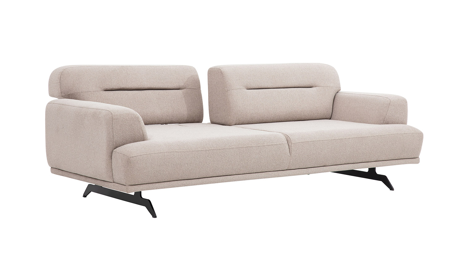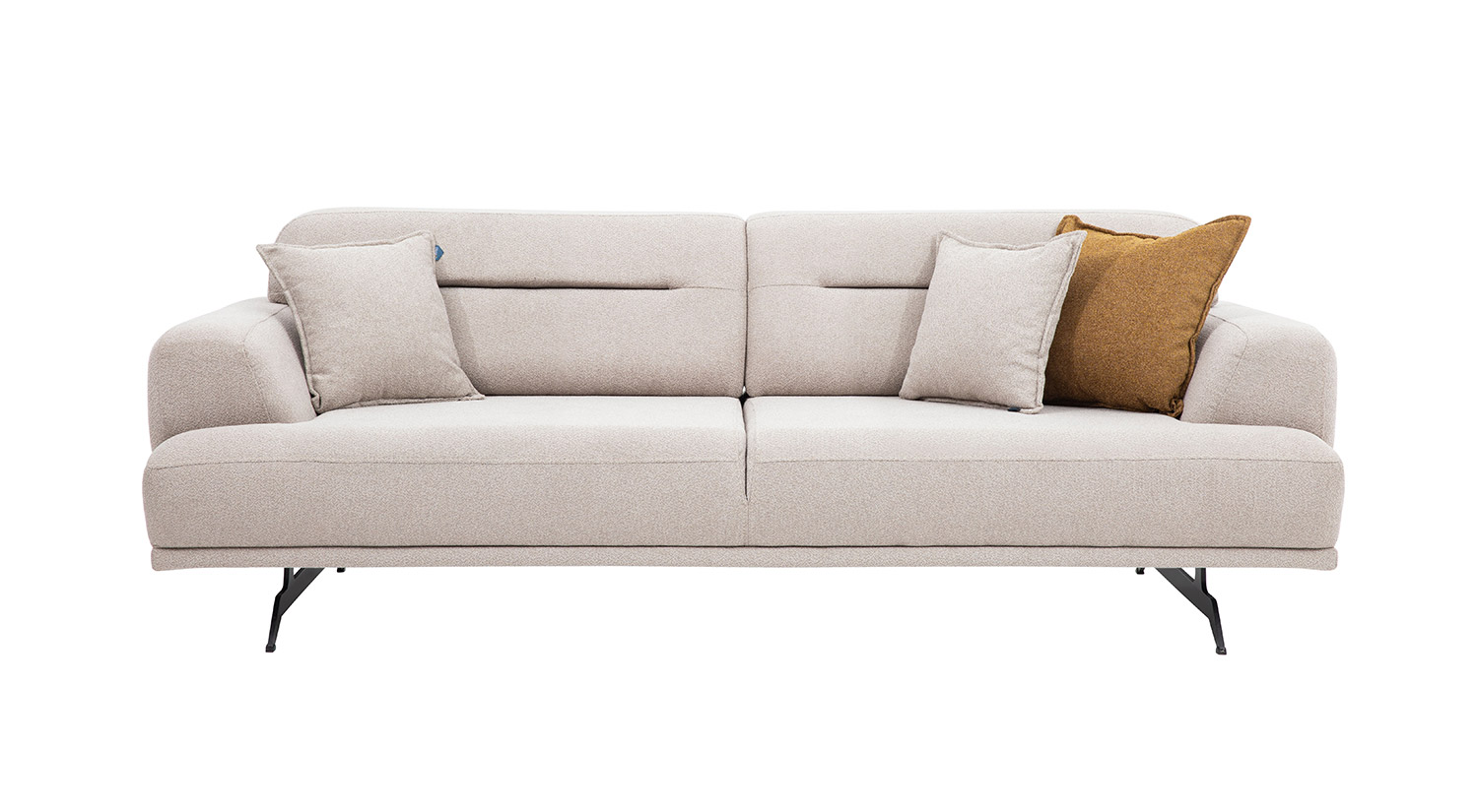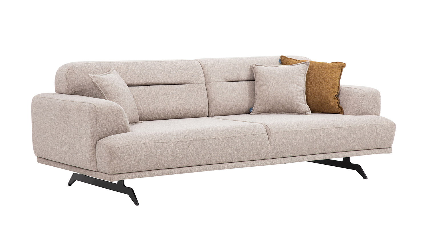Canapeaua Aqua, Crem, 3 Locuri, 225×100×80 cm, se remarcă printr-un design modern și elegant. Structura sa este robustă, cu linii curate și un finisaj neted, oferind un aspect sofisticat. Materialul textil de culoare crem adaugă un plus de rafinament și confort. Brațele și spătarul sunt bine conturate, asigurând un suport optim. Picioarele negre, ușor înclinate, completează designul contemporan al canapelei, oferindu-i stabilitate și un stil distinctiv. Această piesă de mobilier este ideală pentru a adăuga un aer de eleganță oricărui living.