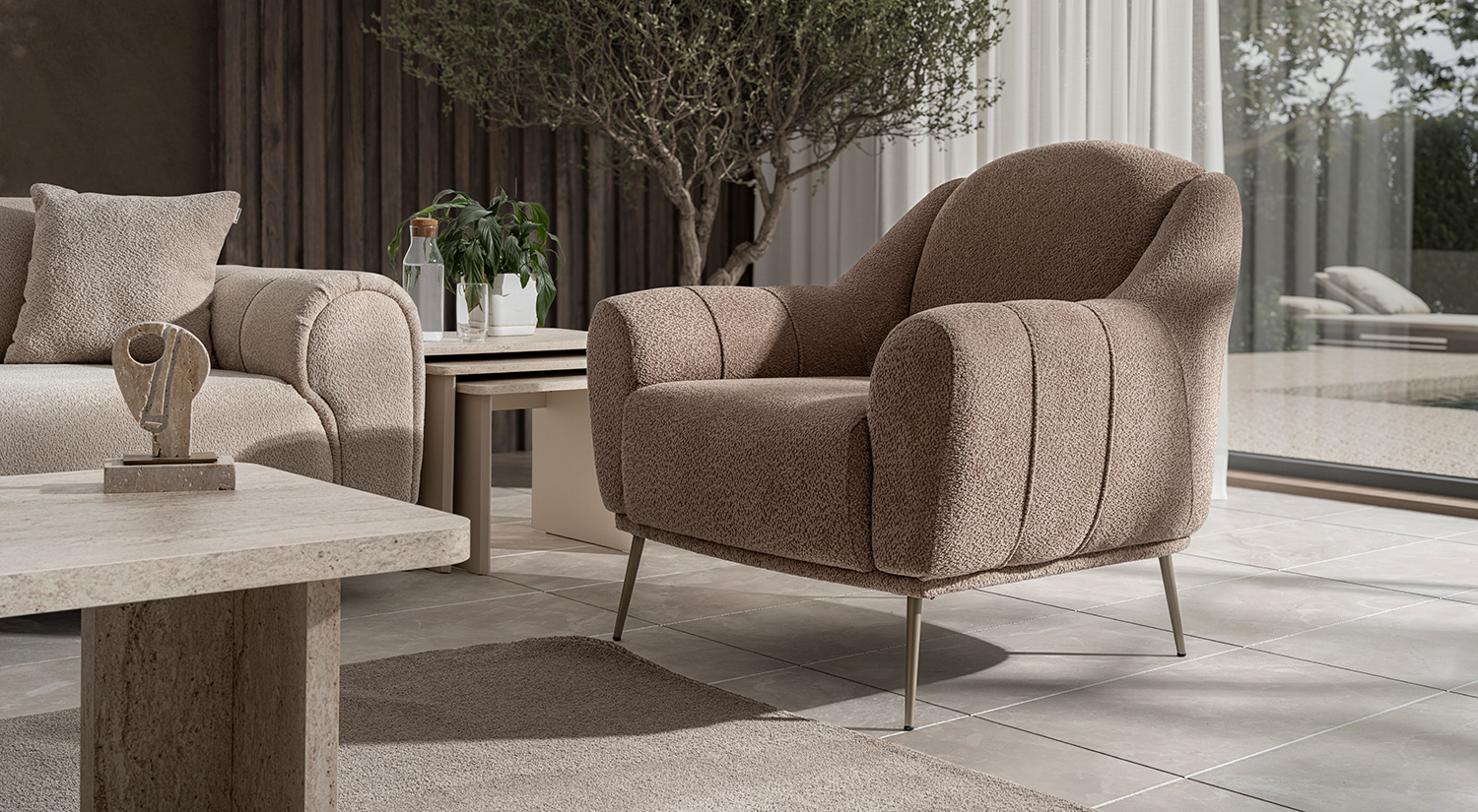 Fotoliul Alaska, Maro, cu dimensiunile de 102×92×90 cm, impresionează prin designul său elegant și confortabil. Structura sa robustă este evidențiată de liniile curbe și brațele generoase, oferind un aspect primitor. Finisajul textil de înaltă calitate adaugă un plus de rafinament, completând perfect orice decor modern. Picioarele metalice subțiri conferă stabilitate și un aer contemporan, făcând din acest fotoliu o piesă centrală ideală pentru orice spațiu de locuit.
