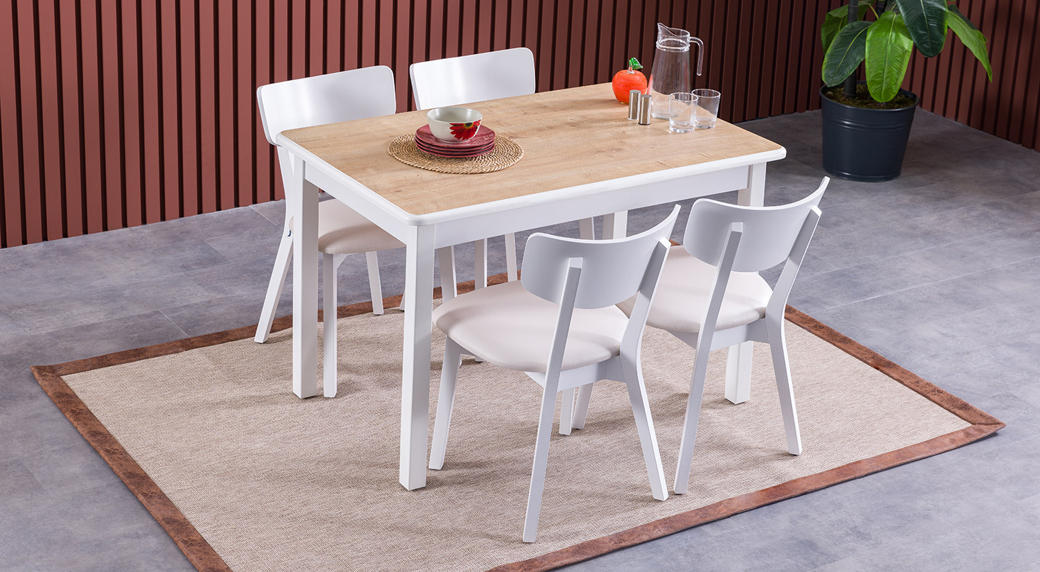 Masa de Bucătărie Lotus este o piesă de mobilier elegantă și funcțională, cu un design simplu și modern. Structura sa este robustă, având un finisaj alb imaculat care se îmbină armonios cu blatul de culoare lemn deschis. Masa nu are rafturi deschise, uși sau spații închise, fiind concepută pentru a oferi un aspect curat și aerisit. Materialele de calitate asigură durabilitate și stabilitate, făcând-o ideală pentru orice bucătărie modernă.
