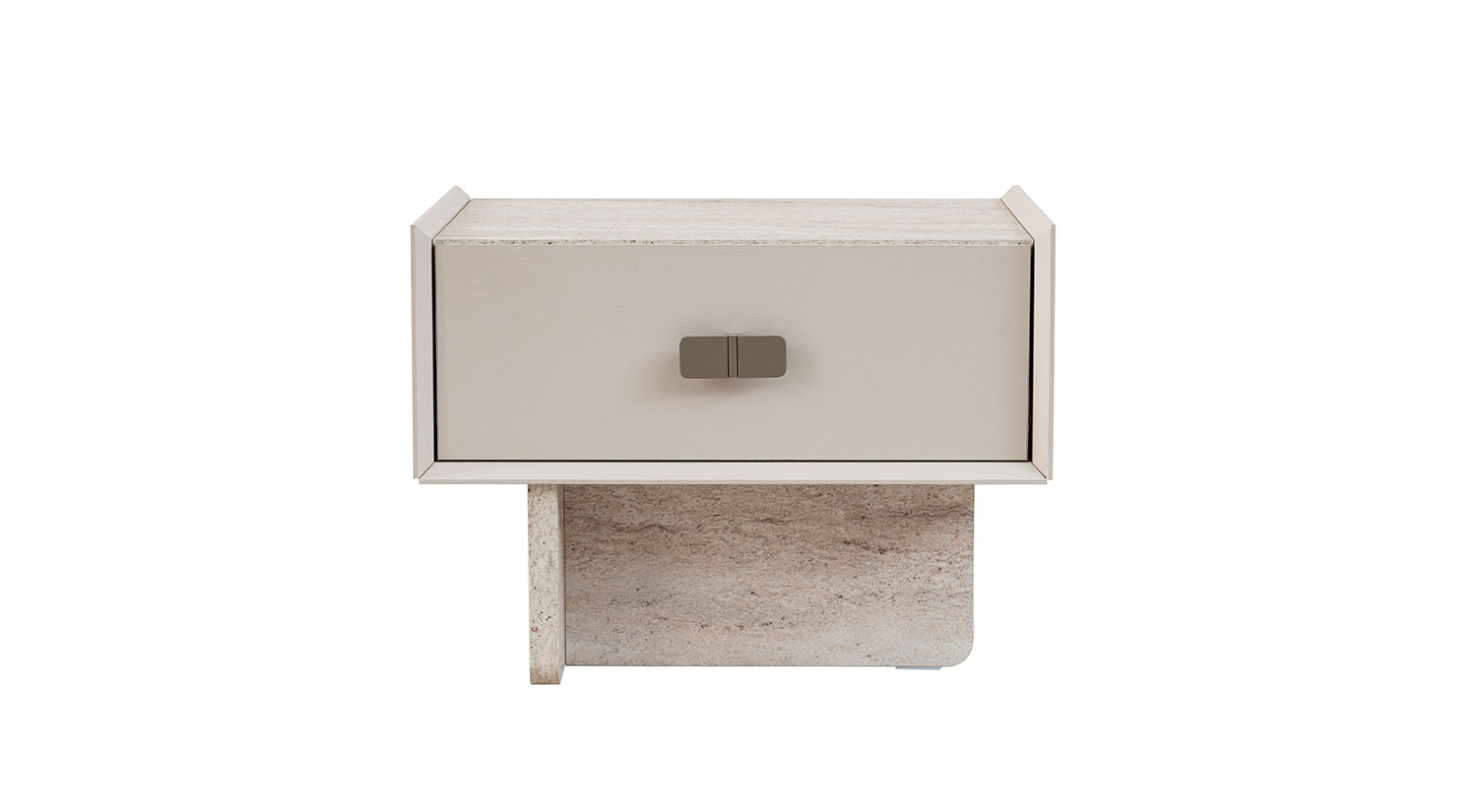 Noptiera Alaska, 2 Piese, 60×45×45 cm, prezintă un design modern și elegant, cu un finisaj neted și rafinat. Structura sa include un sertar cu un mâner metalic minimalist, oferind un spațiu de depozitare închis. Baza solidă, cu un aspect texturat, completează designul, adăugând stabilitate și un contrast vizual plăcut. Materialele utilizate asigură durabilitate și un stil contemporan, potrivit pentru orice dormitor modern.