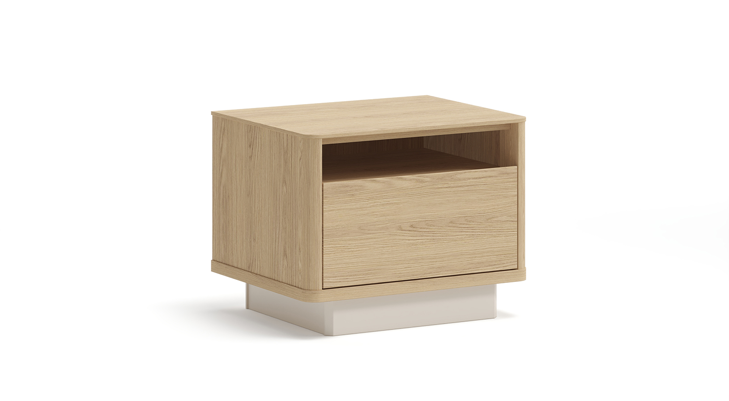 Noptiera Soho, 2 Piese, prezintă un design modern și elegant, cu o structură compactă. Este realizată dintr-un material cu finisaj de lemn deschis la culoare, oferind un aspect natural și cald. Produsul include un raft deschis în partea superioară și un spațiu închis cu ușă în partea inferioară, asigurând atât accesibilitate, cât și depozitare discretă. Baza solidă completează designul, conferindu-i stabilitate și un aspect contemporan. Această noptieră este ideală pentru a adăuga funcționalitate și stil oricărui dormitor.