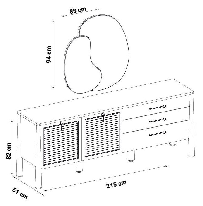 Consola: Lățime: 215 cm, Adâncime: 51 cm, Înălțime: 82 cm