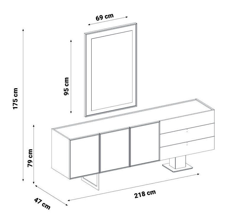Întregul ansamblu: Lățime: 218 cm, Adâncime: 47 cm, Înălțime: 175 cm