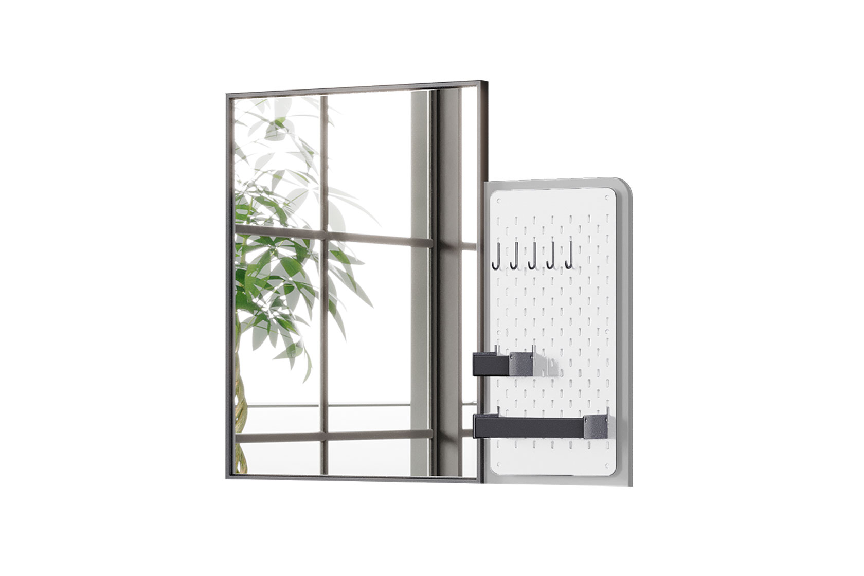 Oglinda pentru dulap Legend Moon, cu dimensiunile de 92×5×80 cm, se remarcă printr-un design practic și stilizat, ideal pentru spații moderne și bine organizate. Oglinda generoasă este încadrată de un finisaj elegant, iar panoul lateral cu cârlige și suporturi deschise oferă soluții utile pentru depozitare. Materialele durabile și aspectul neted contribuie la un rezultat vizual coerent și rafinat. Este o opțiune excelentă pentru tinerii care caută funcționalitate inteligentă într-un design contemporan.