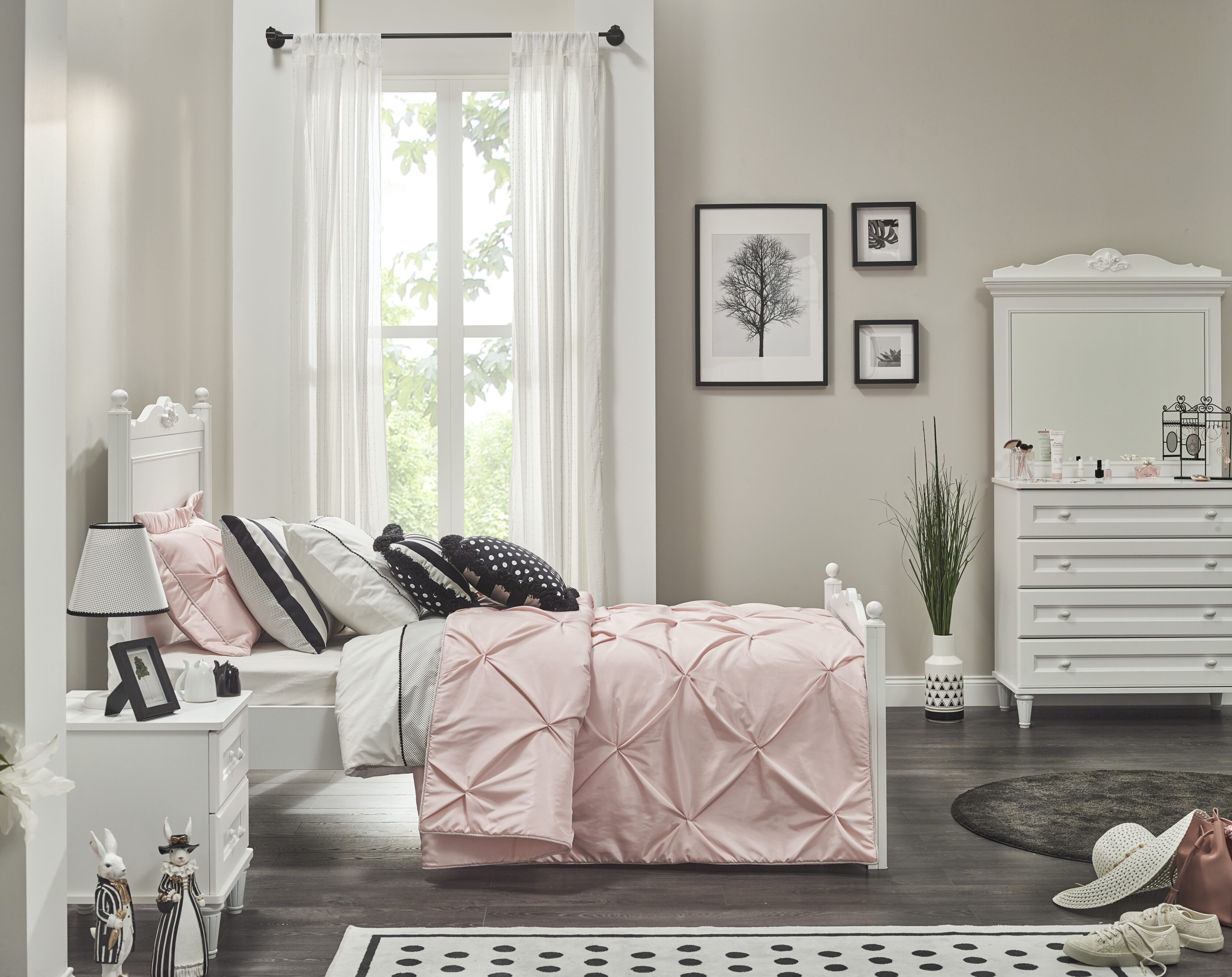 Oglinda pentru dulap Lora, cu dimensiunile de 98,3×8,1×90,3 cm, oferă un echilibru între rafinament clasic și funcționalitate contemporană. Cadrul cu detalii decorative în partea superioară adaugă un accent discret, iar finisajul alb contribuie la un aspect luminos și versatil. Suprafața oglinzii este generoasă, ideală pentru uz cotidian, iar materialele de calitate garantează durabilitate. Este o alegere potrivită pentru tinerii care își doresc un spațiu bine organizat, cu un plus de eleganță și stil personal.
