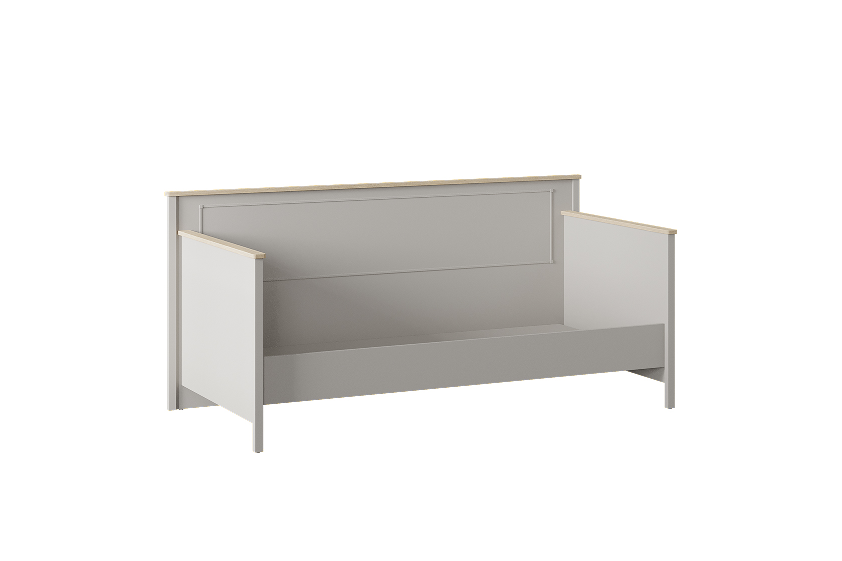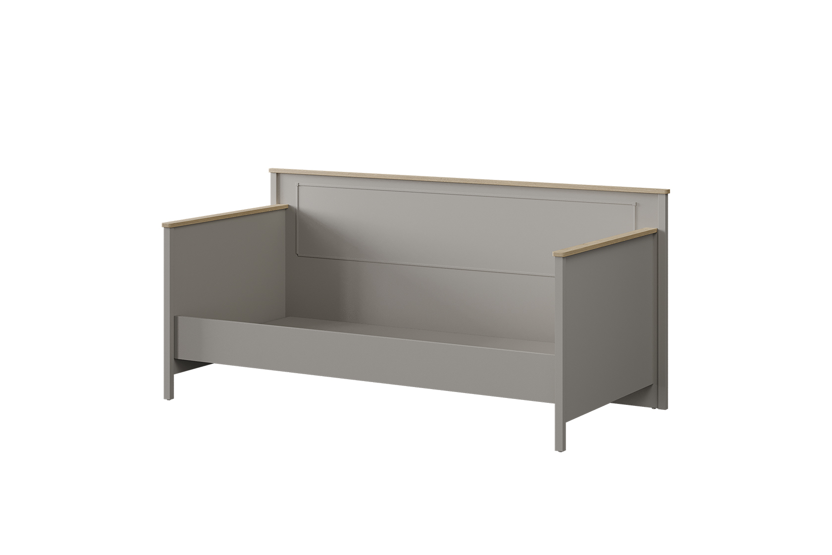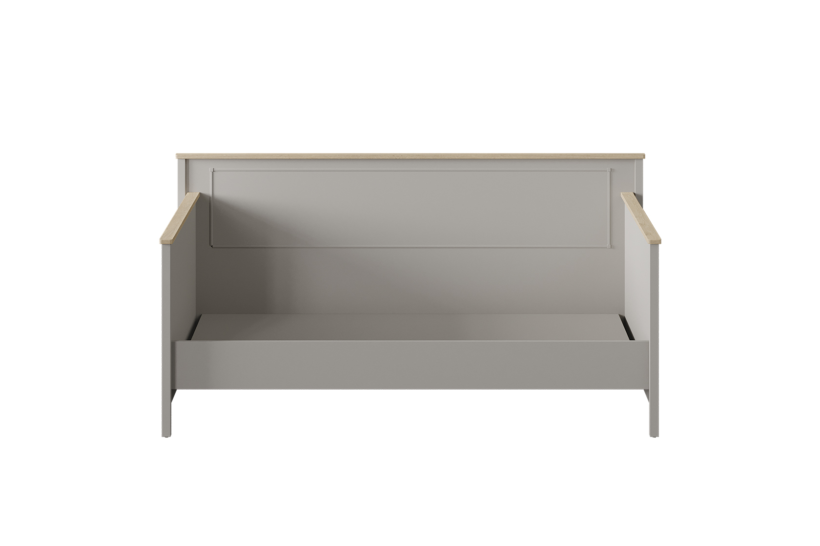 Patul pentru copii Sento, cu dimensiunile de 90×200 cm, prezintă o structură robustă cu linii drepte și un design modern. Este echipat cu panouri laterale și un panou posterior înalt, oferind un aspect compact și sigur. Finisajul este neted, cu o nuanță neutră, completată de margini superioare de culoare deschisă, adăugând un contrast subtil și elegant. Materialul este de calitate, asigurând durabilitate și stabilitate. Acest pat este ideal pentru a completa orice cameră de copil cu stil și funcționalitate.