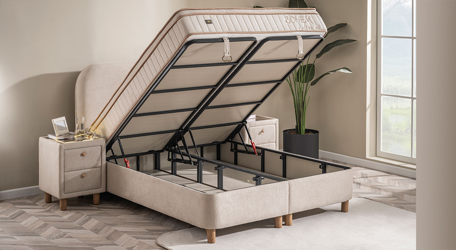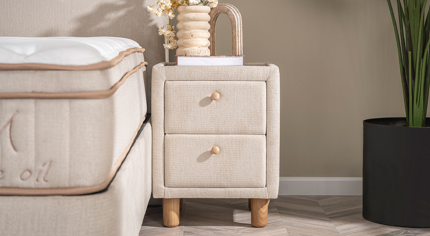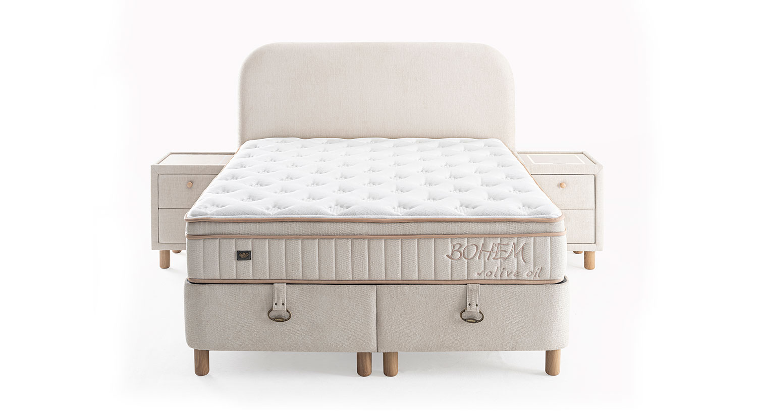 Setul Pat cu Bază și Tăblie Bohem se remarcă printr-un design elegant și modern, cu o tăblie curbată, tapițată într-un material textil de culoare deschisă, ce conferă un aspect rafinat și confortabil. Baza patului este robustă, având un finisaj uniform și picioare din lemn, care adaugă un element natural și cald întregului ansamblu. Materialul textil folosit pentru tapițerie este de calitate superioară, oferind un aspect sofisticat și durabil. Acest set este ideal pentru a completa un dormitor modern, aducând un plus de stil și confort.