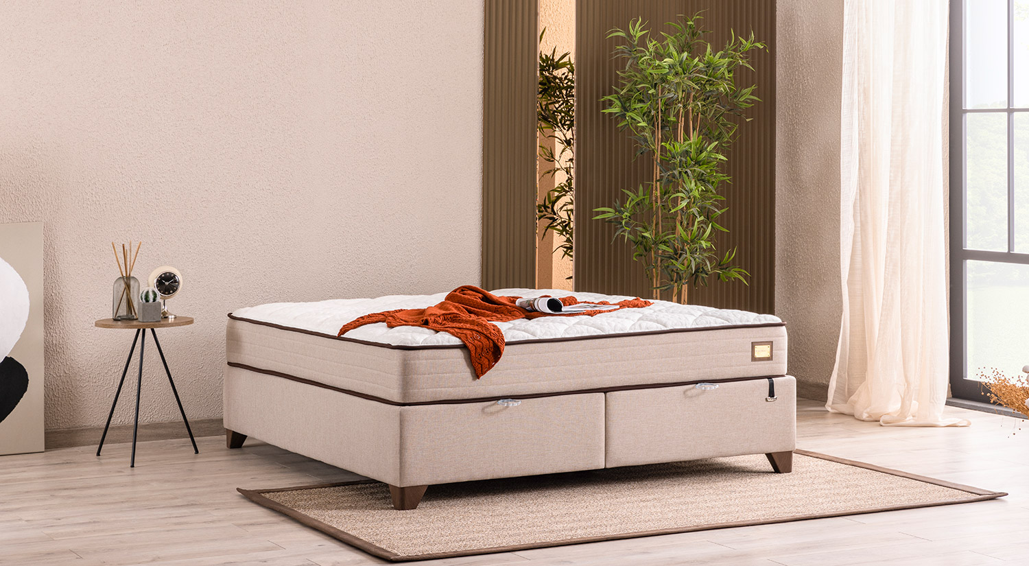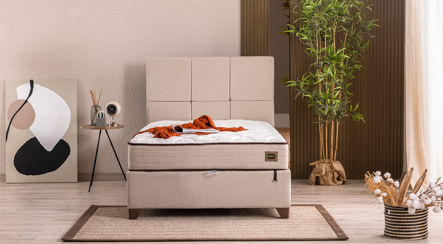 Setul de pat cu bază și tăblie Sunshine se remarcă printr-un design elegant și modern. Tăblia înaltă, tapițată, prezintă un model geometric subtil, adăugând un plus de rafinament. Baza patului este robustă și bine construită, oferind stabilitate și durabilitate. Finisajul materialului este neted și plăcut la atingere, având o nuanță neutră care se integrează armonios în orice decor. Designul simplu și liniile curate fac din acest set o alegere ideală pentru un dormitor contemporan.
